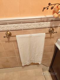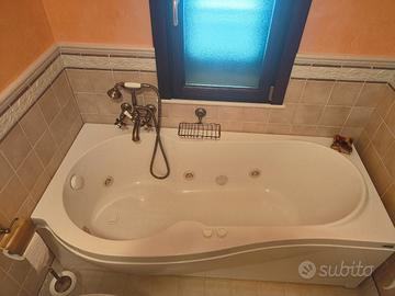 Sanitari wc e bidet completi di rubinetteria, flussometro e tavoloccia. Mobile lavandino completo di rubinetteria, scarico e specchio.