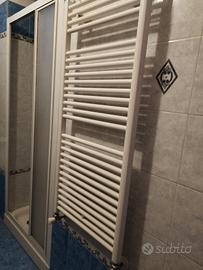 Bagno completo di Lavabo con piano in marmo e mobile di legno. Specchio con cornice in legno. WC. Bidet. Termosifone, box doccia. Tutto già smontato.
