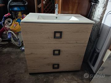 bagno completo con specchio lavabo con mobile cassettiera e colonna girevole