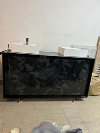 Come in foto, mobile in marmo disegnato a mano quindi pezzo unico completo di mobile, due lavani com miscelatore a muro, sanitari sospesi , specchio e termoarredo. Disponibile per visonare il tutto Ritito a carico dell’acquirente