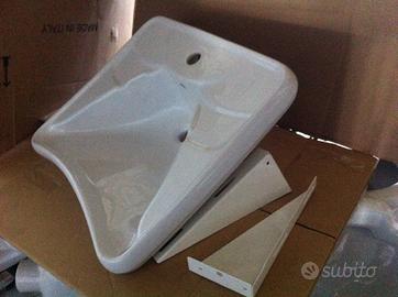 Bagno per disabili come in foto, completo di wc, coprivaso, lavabo con staffe, maniglione ribaltabile con porta rotolo e cassetta a zaino con comando a distanza. Tutto nuovo con possibilità di spedizione.
