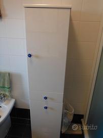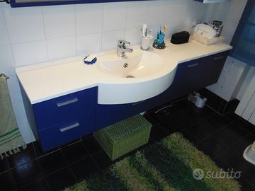 Mobile bagno marca Casabath, ottima qualità, completo come da foto (mobile sospeso con piano lavabo, ampia specchiera completa di luce e mobiletto a specchio 2 ante più mobile a colonna con base portabiancheria) regalo anche tenda a pacchetto verde e blu di corredo. in perfette condizioni!!!