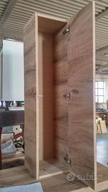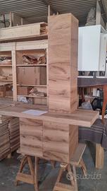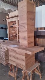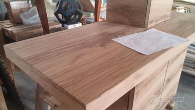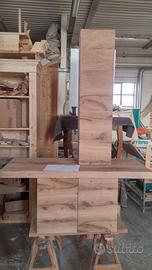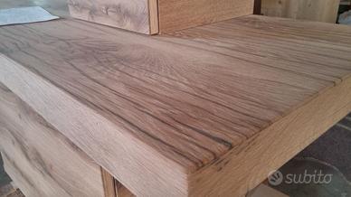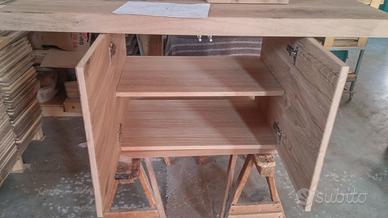 Mobile sospeso costruito con pannello multistrato e lastronato in legno di rovere vecchio recuperato leggermente spazzolato, con misure parte sotto lungh.70 prof.45 h 50cm con ripiano interno aggiustabile da traforare in loco per gli scarichi con 2 ante con apertura push pull con cerniere regolabili da cucina e ferramenta idonea per essere sospeso. mensola misure lungh.130 prof.52 spes.6cm colonna pensile misure lungh. 30 prof.32 h 120 con 3 ripiani in vetro aggiustabili in altezza. Un’ anta con apertura push pull con cerniere regolabili da cucina. completa di attaccaglie regolabili nascoste dietro lo schienale. escluso da prezzo lavello miscelatore e iva franco fabbrica. compreso di finitura trasparente naturale impermeabilizzante per bagno e come da richiesta del cliente sono stati chiuse le fessure con stucco nero. il mobile è stato prodotto su richiesta e venduto non teniamo magazzino ma essendo i diretti produttori li costruiamo ogni qualvolta in base alle proprie esigenze. per dubbi e chiarimenti contattateci direttamente dal falegname costruttore. ASTENERSI RIVENDITORI E COMMERCIANTI