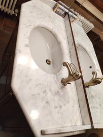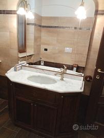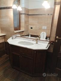 Si vende con urgenza entro giovedì 17 luglio mobile del bagno in arte povera con piccola scheggiatura come si vede da foto, lunghezza 120 cm completa di specchio e faretti e vari accessori
