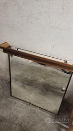 Arredo bagno completo in legno, composto da mobile bagno con lavabo, specchio con colonnina laterale, bidet e accessori coordinati: porta carta igienica, porta asciugamani e porta sapone. Completa l’insieme un elegante lampadario in legno che dona calore e carattere all’ambiente. Soluzione funzionale e raffinata, ideale per chi cerca un bagno accogliente e curato nei dettagli