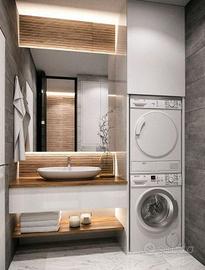 MOBILE BAGNO REALIZZATO IN ROVERE MASSELLO NATURALE SI ADATTA A LAVANDERIE COMPATTE E CON POCO SPAZIO.