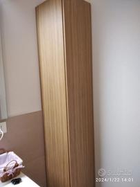 PENSILE: con misura lungh 30 x prof.30 h. 180 composto da 1 antina, schienale posteriore in multistrato di rovere da 8 con applicato internamente attaccaglie posteriori in modo da mettere a bolla il tutto, con relativa barra reggipensile, apertura con gola spizzata a lato sx e cerniere regolabili ammortizzate in chiusura sulla dx, finitura effetto grezzo naturale trasparente impermeabile.