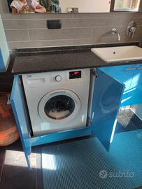 Vendesi bagno in perfette condizioni, completo di grande specchio con illuminazione. Lavabo ad incasso, mobile contenitore per lavatrice e capiente pensile. Pianale in marmo scuro. Bicolore: azzurro e celeste. Disponibile da marzo/aprile 2026. Ritiro in loco.