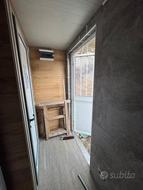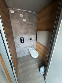 Monoblocco container 3x2,40 completo di 3 wc, 1 con accessori disabili e mensola per cambio pannolini. L'anti bangno con lavandino e rubinetto dayson.