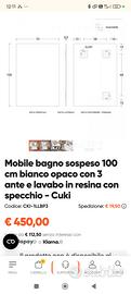 mobiletto bagno sospeso nuovo. vendo per misure errate, sempre inscatolato. trasporto a carico dell' acquirente. per qualsiasi informazione non esitate a chiedere.