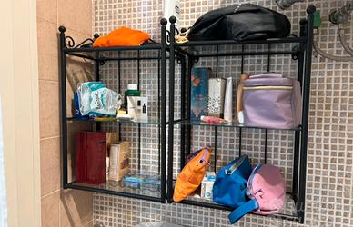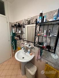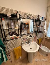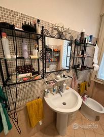 lavabo bagno con mensola, specchio e lampada con 3 luci, e 4 pensili modulari a parete in ferro battuto , adattabili anche ad arredo di altri ambienti.