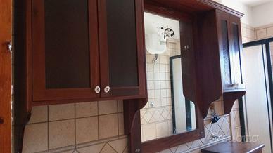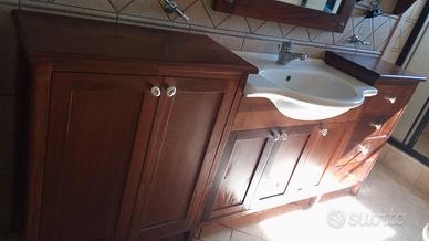 vendesi bagno retro' in legno per cambio arredamento. il pezzo è unico e non presenta imperfezioni, solo quattro buchi interni, fatti per tenere il mobile fisso a parete. il mobile va smontato e portato via. munito di lavello, rubinetto e specchio. prezzo poco trattabile. no perditempo