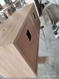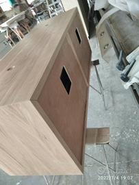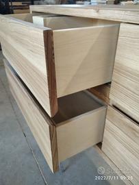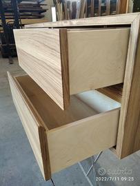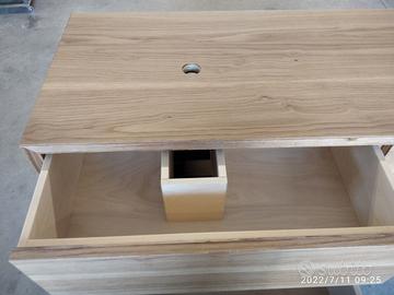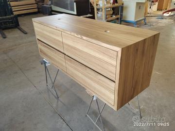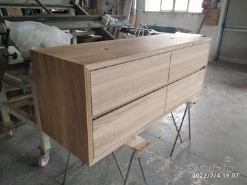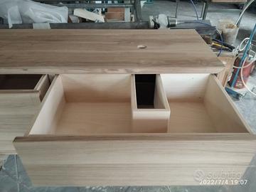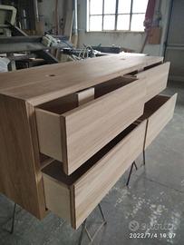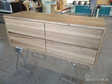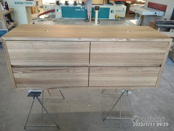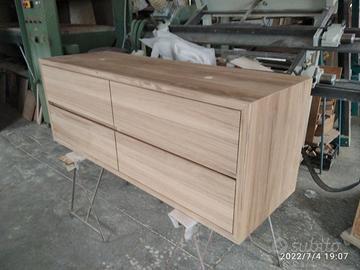 Mobile bagno costruito in massello di rovere di 1° qualità esente nodi spaccature a 3 strati (interno multistrato di pioppo esterno cartelle da 7 mm ambo i lati di massello in questo sistema non si muoveranno nel tempo e non creeranno problemi, con misura lungh. 140 prof 50 h 55 unito la parte superiore da 45° con giunzioni nascoste mentre parte sotto unito dritto. Sospeso con varie attaccaglie posteriori per mettere a bolla il tutto e 4 cassettoni posti 2 a dx e 2 a sx su guide ammortizzate in chiusura marca grass wurth con sponde in betulla da 16 e fondo da 6 apertura con gola fresata centrale in modo che i cassetti sopra si aprano da sotto e viceversa per i cassetti sotto con relativo scanso per far passare i tubi. Schienale posteriore da 8 mm in multistrato di rovere, tutto con finitura effetto grezzo naturale trasparente impermeabile (con questo prodotto non penetra liquidi all'interno e viene isolato. ESCLUSO LAVELLO e MISCELATORE. Il prezzo si intende completo di finitura franco fabbrica iva esente. costruito su commissione ed esigenze del cliente, non è disponibile a magazzino ma essendo i diretti produttori falegnami possiamo riprodurlo uguale o in base alle proprie esigenze. per domande o dubbi contattateci P.S. disponibili a dare suggerimenti o chiarimenti in merito, per noi conta dare vita al vostro sogno DIRETTAMENTE DAL PRODUTTORE ASTENERSI RIVENDITORI O COMMERCIANTI