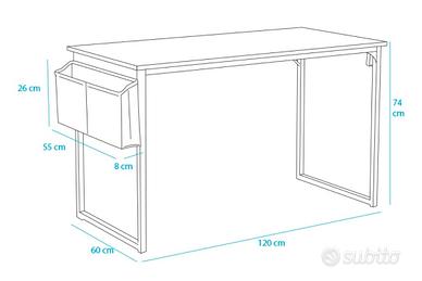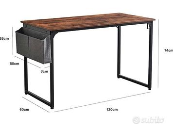 RITIRO A CARICO DEL COMPRATORE ZONA LAMBRATE-UDINE BAKAJI Scrivania Tavolo da Lavoro Porta Pc Computer Piano in Legno MDF con Struttura in Metallo Organizer Portatutto in Tessuto e Gancio Casa Ufficio Design Moderno Industriale 120 x 60 x H74 cm