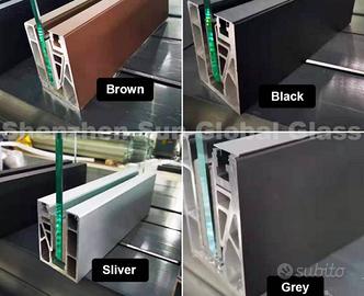 balaustra in vetro temprato 9+9 cristal , solo 16 metri nuovi mai installati , con canalina modello rafforzato tipo 6 immagine 1 e colore silver completa di tutto . escluso installazione e trasporto
