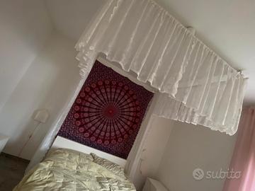 carinissimo baldacchino da montare sopra letto matrimoniale compreso di tende a coda come da foto. Le tende sono pulite e lavate. Regolabile e di facile montaggio.