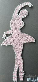 Quadro realizzato a mano con la tecnica della String art (chiodini e filo). Presenta l’appendino per essere appeso. Conservato nella sua confezione creata su misura.