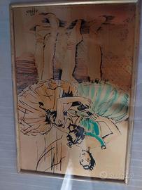 quadretto con un grazioso dipinto ,ballerine classiche con tutù. firmato effeò e dietro riportata la certificazione. la misura dell disegno è 10,5 × 13. la cornice 23 per 28.