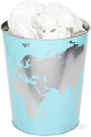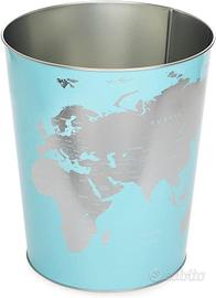 Balvi Set Porta matite e Cestino per carta - linea Globe, Materiale latta, Colore Turchese - ideale per ufficio/studio/cameretta.
