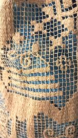 Splendida balza finale in filet, eseguita interamente a mano, con lunghissime frange.
