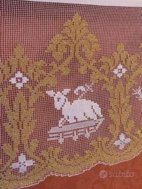 Realizzo balza per tovaglia altare a filet a modano var bianco/oro con simboli Eucaristici, filato utilizzato DMC, altezza balza 35cm