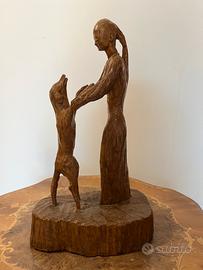 “Bambina con cane” - Scultura in legno primi anni ‘70 di Giovanni Bertozzi rintagliata a mano.