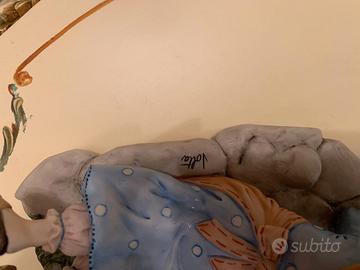 Capodimonte rappresentante una bambina che dà il mangime ai pulcini firmata Volta