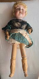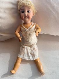 Bambola porcellana tedesca 40 cm modello 390 testa realizzata da Armand Marseille i primi del novecento, il produttore del corpo, in legno laccato è " E F.I. Già Fratelli Bianchelli" come riporta il bollo apposto sul busto, la bambola è in buonissimo stato tutte le sue parti sono integre, i vestiti sono originali, gli occhi mobili, braccia e gambe snodate, raffinatissimo il dettaglio dei dentini.
