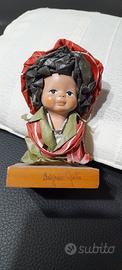 N 2 testine pugliesi di EUGENIO GALLI bottega d'arte. Lavorazione cartapesta pugliese di teste di porcellana di bambola e bambino interamente fatte e dipinte a mano. Bambina alta cm 17 larga cm 12