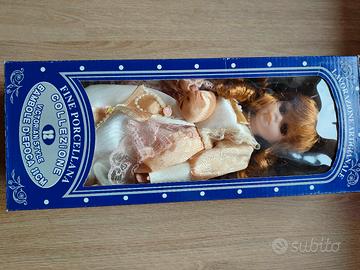 La bambola è un po' datata 25-30 anni ma non è stata mai usata né esposta, è sempre rimasta nella sua scatola originale. Altezza 30 cm, dotata di piedistallo.