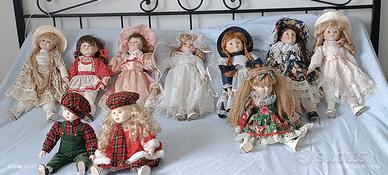 vendo 10 bambole in porcellana da collezione tenute protette mai usate come giocattolo. (non mostrate singolarmente causa spazio foto di Subito) possibile vendita singolo pezzo (da concordare) per qualsiasi info o uleriori foto non esitate a contattarmi.