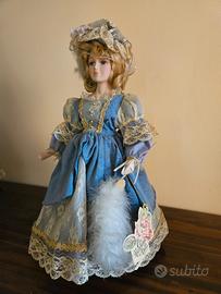 Victorian Dolls Grace: Grace, con il suo elegante vestito azzurro con pizzo, capelli biondi a boccoli e occhi azzurri scintillanti, aggiunge grazia e delicatezza alla tua collezione di bambole di porcellana.