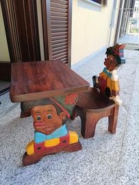Banchetto con sedia Pinocchio artigianale