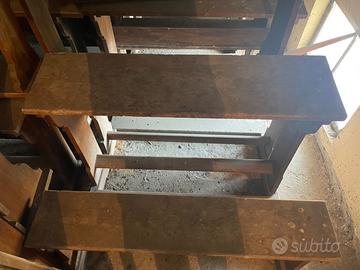 banchi scuola in legno anni '50 in buono stato; richiedono una pulizia e un leggero restauro conservativo; sono disponibili 20 banchi.
