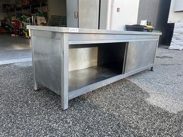 Banco acciaio inox 235×70 con ante scorrevoli