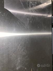 Banco acciaio con lavello lato sx, alzatina posteriore e lato dx. Misura L. 220 p 60 h 85. Fatto su misura aprile 2025.vendo causa inutilizzo