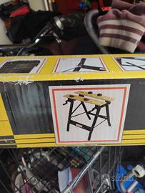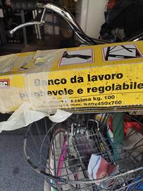 Banco da lavoro pieghevole e rrgolabile Piano in legno corpo in metallo Barra portautensili Mai usato!!