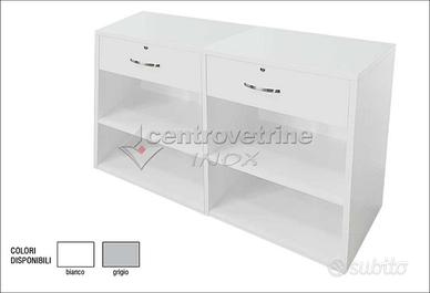 - N. 2 Banchi Top Legno "SD" da L.90 x P.60 x H.90 cm. con struttura in nobilitato, ognuno con n. 1 cassetto posteriore con serratura e n. 1 ripiano intermedio. Banchi forniti smontati.
