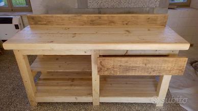 bancone da cucina in legno massiccio rustico fatto a mano