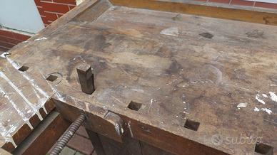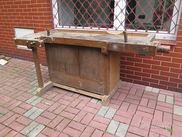 Antico banco da falegname in legno duro faggio completo delle due morse entrambe funzionanti utilizzabile per lavoro o arredamento. Il piano 175x81x83H