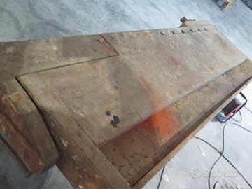 Vecchio banco da lavoro in faggio da restaurare completo di due morse.