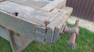 Vecchio banco da falegname funzionante con due morse e un cassetto in legno duro (ROVERE)