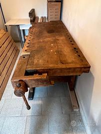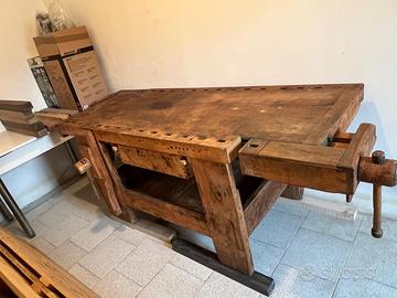 TAVOLO DA FALEGNAME ANTICO, IN NOCE CON MORSE FUNZIONANTI, LEGNO SANO MA CON PATINA ANTICA. MISURE 200X78 (MORSE NON COMPRESE) H. 83 CM.