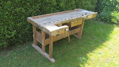Bancone da lavoro da falegname in ottime condizioni in rovere / ingombro del piano 221x82 cm