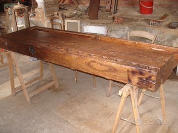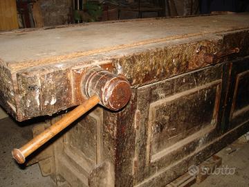 Autentico banco da falegname parzialmente da restaurare e pulire. Misure h.89 x 60p. X 200l. Misura sportello 68x 44.