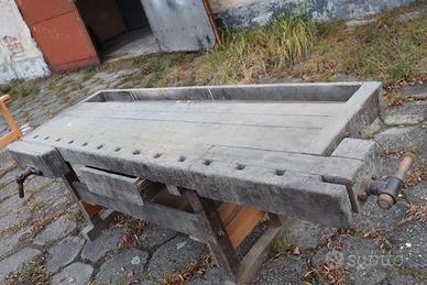 Vendo banco da falegname anni 50 originale in legno di faggio, completo in ogni sua parte, morse in legno/metallo funzionanti e cassetto centrale. Misura 215/66 CM.