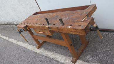 Vendo banco da falegname anni 80 originale in legno di faggio, completo in ogni sua parte, morse in legno funzionanti e cassetto centrale. Misura 172/56 CM.
