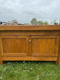 Solido, vissuto, autentico. Questo banco da falegname d’epoca, in rovere massello, è stato restaurato con cura, conservando il suo fascino originale. Morsa funzionante, struttura robusta, anima artigiana.