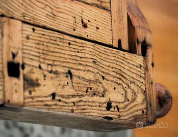 I piccoli segni del tempo – fori, cerchi e leggere imperfezioni – raccontano la sua storia e lo rendono un pezzo autentico e romantico, perfetto per chi ama lo stile country chic o gli arredi dal gusto artigianale.