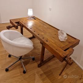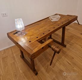 Stupendo banco da falegname restaurato da utilizzare come scrivania, tavolo da cucina, da soggiorno o da ingresso.